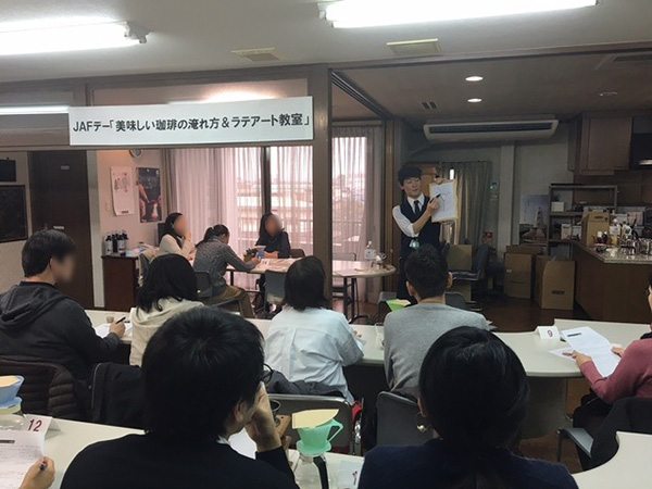 20名限定の教室では、約1時間に渡り美味しい珈琲を入れるコツや、ラテアートなどを楽しく学んで頂きました。