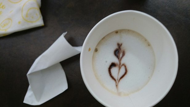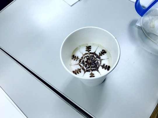 ご家庭でも出来る様にミルクフローサーでミルクを泡立てて、爪楊枝で描いていく簡単なラテアートですが