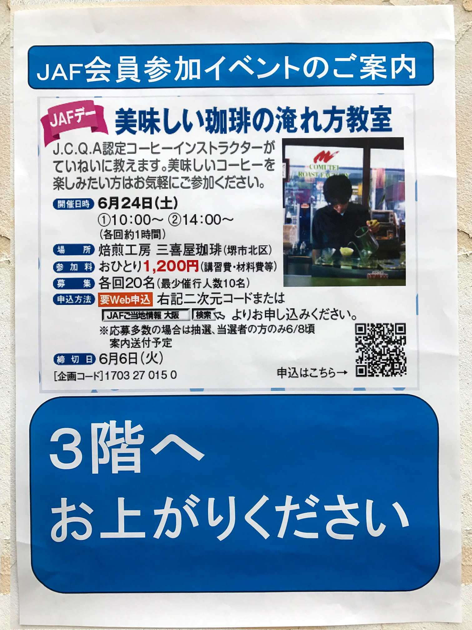 6月24日(土) 三喜屋珈琲の大阪支店にて、JAFの皆様を対象とした「美味しいコーヒーの淹れ方教室」を