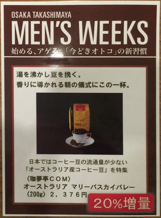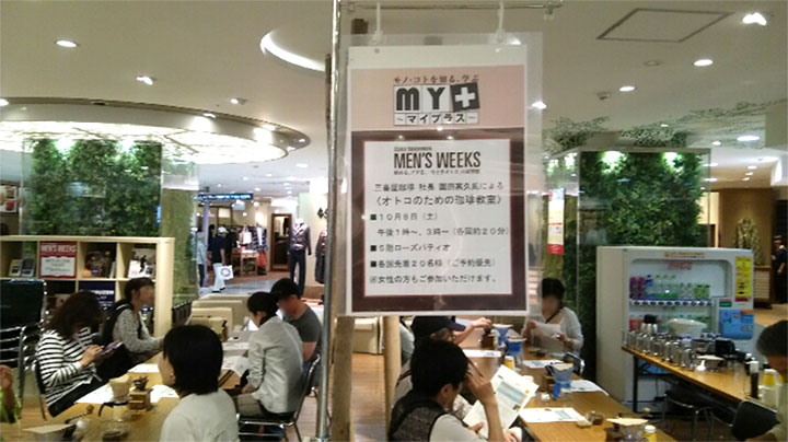 10月8日(土)に髙島屋大阪店 5階 ローズパティオにて、髙島屋企画 ~ MEN’S WEEKS *始める、アゲる「今どきオトコ」の新習慣* ~ の一環として、モノ・コトを知る、学ぶ をテーマに珈琲教室を開催致しました。