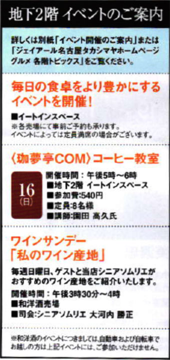 10月16日(日)にJR名古屋タカシマヤ店 地下2階 イートインスペースにおいて、「珈琲教室」を開催致しました。
