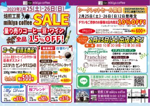 2023年2月25日(土)・26日(日)に焙煎工房mikiya coffeeにて月末セールを開催いたします。