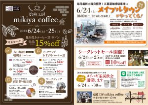 2023年6月24日(土)・25日(日)に焙煎工房mikiya coffeeにて月末セールを開催いたします。