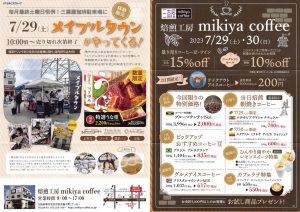 2023年7月29日(土)・30日(日)に焙煎工房mikiya coffeeにて月末セールを開催いたします。